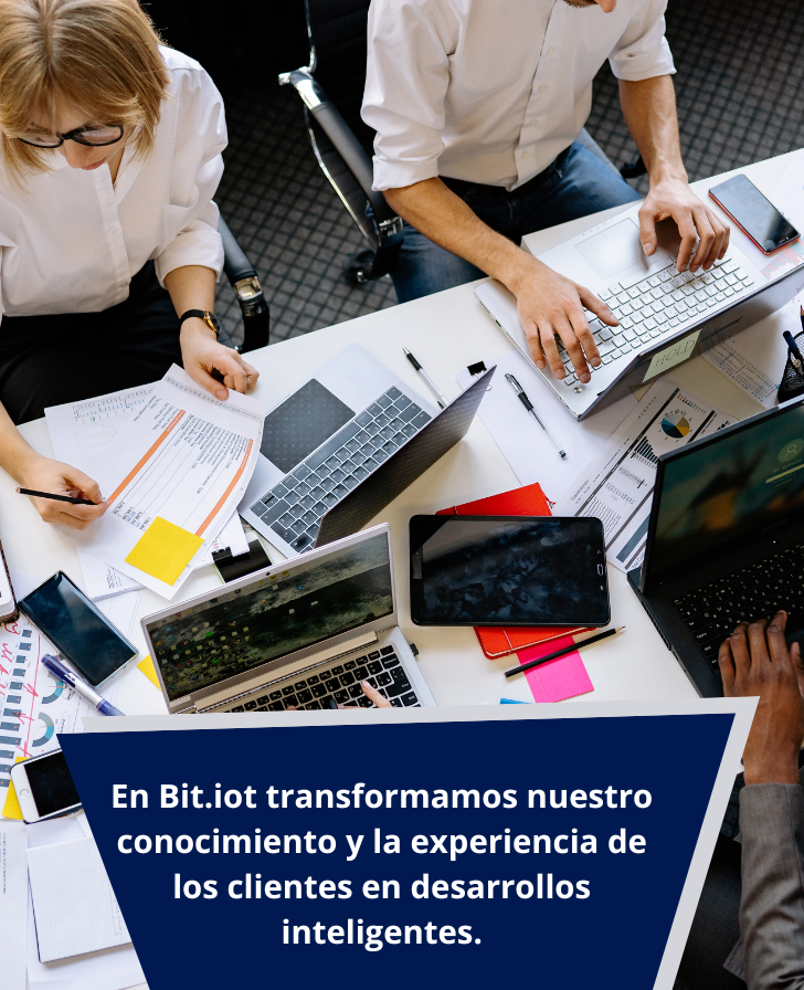 Somos un equipo donde se integran diferentes disciplinas: estadísticos, matemáticos, economistas, ingenieros, desarrolladores, comunicadores, diseñadores y otras áreas del conocimiento, que permiten crear de forma integral soluciones inteligentes de software y hardware, para aumentar la productividad de tu negocio a partir de información real. Nuestro equipo cuenta con una amplia experiencia en el mercado, esto ha llevado a Bit.iot a posicionarse y a instalar sus soluciones en diferentes ciudades del país con clientes importantes en el sector comercial de cada región.